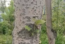 毛白杨是杨柳科、杨属植物。乔木,高达30米。树皮幼时暗灰色。侧枝开展,雄株斜上,老树枝下垂;小枝初被灰毡毛,后光滑。芽卵形,花芽卵圆形或近球形,微被毡毛。叶柄上部侧扁,长3-7厘米。…全部>>