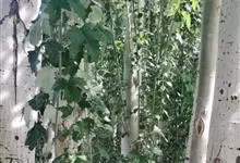新疆杨是杨柳科、杨属的落叶乔木树,高可达35米,胸径可达1米;树冠窄圆柱形或尖塔形;树皮为灰白或青灰色,光滑少裂;萌条和长枝叶掌状深裂,基部平截;叶柄侧扁或近圆柱形,披白绒毛;花序轴有毛,雌蕊具短柄,…全部>>