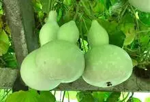 葫芦Standl.),是葫芦科葫芦属的攀援植物,又名匏、瓠。葫芦是一年生攀援草本;茎、枝具沟纹,被粘质长柔毛,老后渐脱落,变近无毛。叶柄长16-20厘米,有和茎枝一样的毛被,…全部>>