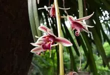 莲瓣兰是兰科、兰属植物。莲瓣兰为细长的线形,叶片质地较软,稍革质化,弓形弯垂,长35-60厘米,宽0.4-0.6厘米。叶基部有稍膨大的假鳞茎可储存水分和养分,根为圆柱状肉质根,直径0.5-1厘米,…全部>>