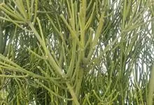 绿玉树是大戟科、大戟属植物。小乔木,高2-6米,直径10-25厘米,老时呈灰色或淡灰色,幼时绿色,上部平展或分枝;小枝肉质,具丰富乳汁。叶互生,长圆状线形,长7-15毫米,宽0.7-1.5毫米。…全部>>