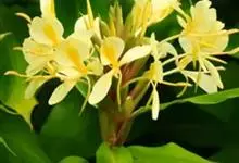黄姜花:姜科,姜花属多年生草本草本芳香花卉,秋冬季开花,穗状花序,长圆形;苞片长椭圆形,覆瓦状排列,每一苞片内有花3-5朵;花深黄色,形似蝴蝶,气味芬芳纯正,沁人心脾;唇瓣倒心形,黄色,…全部>>