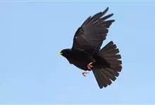 红嘴山鸦,是脊索动物门鸟纲雀形目鸦科鸟类。红嘴山鸦的成鸟通体羽毛纯黑色具有蓝色金属光泽,翼和尾泛有蓝绿色金属光泽;虹膜暗褐色,喙较为尖细,并且呈镰状下弯,喙和脚朱红色。…全部>>