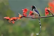 红嘴蓝鹊,别名山鹊、长尾鹊,是鸦科蓝鹊属的一种观赏性较强的大型鸣禽。该物种为体长54~65cm,头、颈、喉和胸黑色,头顶至后颈有一块白色至淡蓝白色或紫灰色块斑,其余上体紫蓝灰色或淡蓝灰褐色。尾长呈凸状,…全部>>
