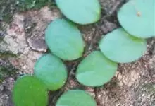 伏石蕨是水龙骨科、伏石蕨属小型附生蕨类植物。根状茎细长横走,淡绿色,疏生鳞片粗筛孔,两侧不规则分叉。叶远生,二型;叶片近球圆形或卵圆形,基部圆形或阔楔形,全缘;能育叶狭缩成舌状或狭披针形,叶脉网状,…全部>>