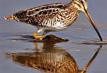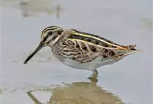 扇尾沙锥是鹬科、沙锥属鸟类,又称普通沙锥、扇尾鹬、小沙锥。体型小;喙粗长而直;上体黑褐色,具栗色和黄白色斑纹;头顶具黄白色中央冠纹,背具4条白纵带;下体白色,颈、胸淡褐色,带褐色纵纹;翼后缘白色,…全部>>