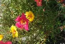 大花马齿苋:一年生草本,高10-30厘米。茎平卧或斜升,紫红色,多分枝,节上丛生毛。叶密集枝端,较下的叶不规则互生,叶片细圆柱形,无毛。花单生或数朵簇生枝端,直径2.5-4厘米,…全部>>