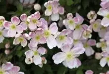 女萎,是毛茛目、毛茛科、铁线莲属多年生草质藤本植物。小枝和花序梗、花梗密生贴伏短柔毛。小叶片卵形或宽卵形,边缘有锯齿,上面疏毛,下面疏生短柔毛。圆锥状聚伞花序多花;花萼片开展,白色,狭倒卵形,雄蕊无毛,…全部>>