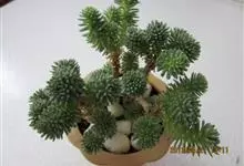 小松绿是景天科景天属植物,多肉植物,植株低矮,多分枝,株型近似球状,新枝浅绿色,以后逐渐转为灰白色,肉质叶近似针状。枝条下部的老叶容易干枯,贴在枝干上,形成类似松树皮般的龟裂,数月才脱落,…全部>>