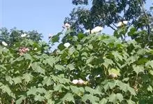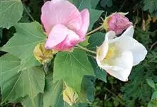 木芙蓉,锦葵科木槿属落叶灌木或小乔木。小枝上有细绒毛;叶片为卵状心形,托叶为披针形,常早落;花单生,花萼为钟形,花冠初为白色或淡红色,后逐渐变为深红色;果实为扁球形,有淡黄色的毛附着。花期8到10月。…全部>>