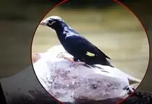 金冠树八哥为椋鸟科树八哥属的鸟类。体长约23厘米,闪辉黑色。特征为具翼斑及颏黄色,脸颊裸露皮肤粉黄色。分布于印度、缅甸、泰国以及中国大陆的云南、广东等地。…全部>>