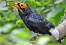 金冠树八哥为椋鸟科树八哥属的鸟类。体长约23厘米,闪辉黑色。特征为具翼斑及颏黄色,脸颊裸露皮肤粉黄色。分布于印度、缅甸、泰国以及中国大陆的云南、广东等地。…全部>>