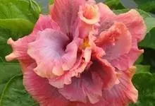 重瓣朱槿是锦葵科、木槿属常绿灌木植物;小枝疏被星状柔毛单叶互生,卵形或卵状披针形,基部圆形;叶柄长;托叶早落;花重瓣,较朱槿为大;花萼小,钟形,基部具有苞片多枚;花瓣多枚排列成彩球状,…全部>>