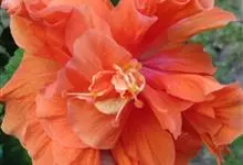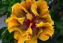 重瓣朱槿是锦葵科、木槿属常绿灌木植物;小枝疏被星状柔毛单叶互生,卵形或卵状披针形,基部圆形;叶柄长;托叶早落;花重瓣,较朱槿为大;花萼小,钟形,基部具有苞片多枚;花瓣多枚排列成彩球状,…全部>>