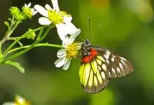 报喜斑粉蝶是粉蝶科斑粉蝶属的一种动物,又名红肩粉蝶、藤粉蝶等。幼虫群集性很强,从同一卵块孵化出的幼虫,幼龄期全部群集在一起取食,高龄幼虫常分散成小群。幼虫群集危害叶片,造成秃枝,严重者可将树吃成光杆,…全部>>