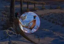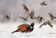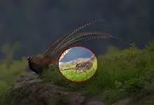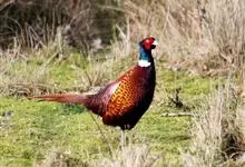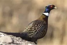 环颈雉是雉科、雉属的一种走禽,共有30个亚种。体重900-1050克,体长53-89厘米。体型较家鸡略小,但尾巴却长得多。雄鸟和雌鸟羽色不同,雄鸟羽色华丽,多具金属反光,…全部>>