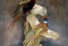 雉鸡:鸟纲、雉科、雉属的一种走禽,共有30个亚种。体形较家鸡略小,但尾巴却长得多。雄鸟和雌鸟羽色不同,雄鸟羽色华丽,多具金属反光,头顶两侧各具有一束能耸立起而羽端呈方形的耳羽簇,…全部>>