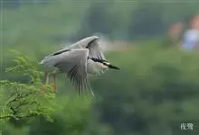 夜鹭是中型涉禽,体长46-60厘米。体较粗胖,颈较短;嘴尖细,微向下曲,黑色;胫裸出部分较少,脚和趾黄色;头顶至背黑绿色而具金属光泽;上体余部灰色;下体白色;枕部披有2-3枚长带状白色饰羽,下垂至背上,…全部>>