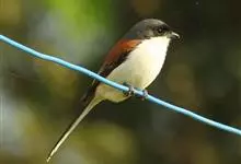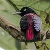 朱鹂:中等鸟类,体长23-28厘米。雄鸟绛紫红色,头、上胸及翼黑色。雌鸟上背及背部深灰色,尾覆羽及尾绛紫红色,腹部及下胸白而密布黑色纵纹。与鹊色鹂幼鸟的区别在上背灰色较深,下体白色较少且纵纹较粗。…全部>>