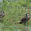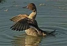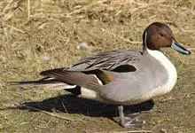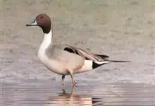 针尾鸭,是雁形目鸭科鸭属动物。体长约75厘米的大型戏水鸭,雄鸟头暗褐色,颈侧有白色纹路,向下与胸部白色相连,中央一对尾羽特别长;背灰色,有黑色细纹;翼镜绿色,胸腹白色,尾下覆羽黑色;雌鸟体羽大致为褐色,…全部>>