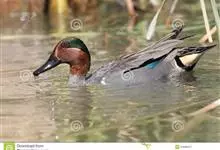 绿翅鸭是小型鸭类,体长37厘米,体重约0.5千克。嘴脚均为黑色。雄鸟头至颈部深栗色,头顶两侧从眼开始有一条宽阔的绿色带斑一直延伸至颈侧,尾下覆羽黑色,两侧各有一黄色三角形斑,在水中游泳时,极为醒目。…全部>>