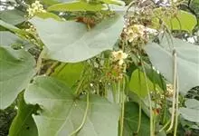 楸紫葳科小乔木,高8-12米。叶三角状卵形或卵状长圆形,宽达8厘米,顶端长渐尖,基部截形,阔楔形或心形,叶面深绿色,叶背无毛;叶柄长2-8厘米。顶生伞房状总状花序,有花2-12朵。花萼蕾时圆球形,…全部>>