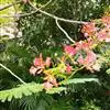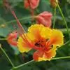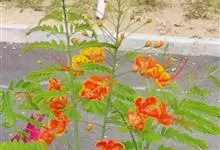 洋金凤 Sw.),豆科小凤花属灌木状或小乔木植物,枝无毛,绿或粉绿色;二回羽状复叶;总状花序伞房状,萼片无毛,花瓣橙红或黄色,圆形,花丝红色,子房无毛,花柱橙黄色;荚果窄而薄,…全部>>