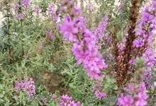 千屈菜是千屈菜科千屈菜属的多年生草本植物;根茎粗壮;叶披针形或宽披针形,无柄;花序簇生,呈聚伞状,花梗及花序梗甚短,花枝似一大型穗状花序,红紫色或淡紫色,苞片宽披针形或三角状卵形;果实为蒴果,扁圆形。…全部>>
