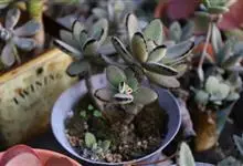 江户紫,景天科伽蓝菜属草本植物,是多年生草本花卉。花白色,但栽培中很少能见到花,常作观叶植物栽培。…全部>>