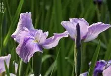 花菖蒲:是玉蝉花的变种。多年生宿根挺水型水生花卉。根状茎短而粗,须根多并有纤维状枯叶梢,叶基生,线形,叶中脉凸起,两侧脉较平整。花葶直立并伴有退化叶1-3枚。花大直径可达15厘米。外轮三片花瓣呈椭圆…全部>>