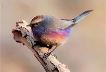 凤头雀莺:小型鸟类。体长9-10厘米,雄鸟呈毛茸茸的紫色和绛紫色,顶冠淡紫灰色,额及凤头白色,尾全蓝。雌鸟喉及上胸白,至臀部渐变成淡紫色,耳羽灰,…全部>>