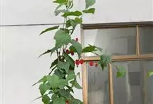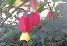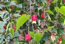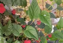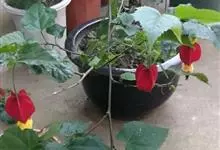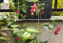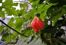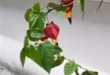 红萼苘麻是锦葵科、苘麻属常绿软木质灌木,叶绿色,长5-10厘米,心形,叶端尖,叶缘有钝锯齿,有时分裂,有细细的叶柄;叶互生,掌状叶脉;花单生于叶腋,具长梗,下垂;花萼红色,半套着大约4厘米长的花瓣,…全部>>