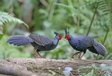 黑鹇是鸡形目雉科目鹇属鸟类,又称鸬雉、黑鸡。体型中等。雄鸟上体黑褐色,背羽具黑紫色金属光泽;头顶具黑羽冠;脸部裸皮呈红色,散生稀疏黑色纤羽;尾长而侧扁,中央两对尾羽红褐色,…全部>>