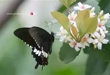 玉斑凤蝶Papilio helenus 别名白纹凤蝶,是凤蝶科凤蝶属美凤蝶亚属大型种类。雌雄同型;体翅皆黑色,后翅正面中室外有3个并列的白色斑,亚外缘有1列模糊的新月形红色斑,…全部>>