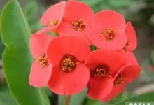 铁海棠为大戟科大戟属蔓生灌木植物;茎多分枝,具纵棱,呈旋转状;叶互生,通常集中于嫩枝上;每个花序基部边缘具微小的红色尖头;苞叶先端圆且具小尖头,无柄,上面鲜红色,下面淡红色;苞片丝状;子房光滑无毛,…全部>>