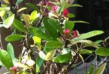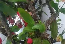 虎刺梅:别称铁海棠,是蔓生灌木植物。茎多分枝,长60-100厘米,直径5-10毫米,具纵棱,密生硬而尖的锥状刺,刺长1-1.5厘米,直径0.5-1.0 毫米,常呈3-5列排列于棱脊上,呈旋转。叶互生…全部>>
