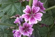 锦葵:二年生或多年生直立草本,高50-90厘米,分枝多,疏被粗毛。叶圆心形或肾形,具5-7圆齿状钝裂片,两面均无毛或仅脉上疏被短糙伏毛。花3-11朵簇生,小苞片3,长圆形疏被柔毛;花紫红色或白色,…全部>>