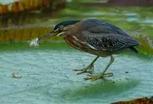 绿鹭:是鹳形目鹭科绿鹭属鸟类。体型小,头顶黑,枕冠亦黑色,上体蝉灰绿色,下体两侧银灰色;前额至后枕及冠羽墨绿色,眼后有一白斑,颊纹黑色;颚纹白色,后颈、颈侧和体侧烟灰色;背部披灰绿色矛状长羽,…全部>>