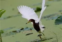 池鹭,是鹈形目鹭科池鹭属鸟类。繁殖期头及颈深栗色,胸酱紫色;非繁殖期背部褐色,头、颈、上胸部具褐色纵纹,下腹部及翼为白色;嘴基黄而尖端黑色,跗趾黄色。非繁殖期飞行时因白色的腹部和飞羽,易与白鹭混淆,…全部>>