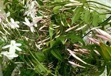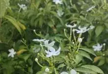 素馨花,木犀科素馨属多年生的攀援灌木植物。攀援灌木,小枝圆柱形,具棱或沟;叶对生,叶轴常具窄翼,小叶片卵形或长卵形;聚伞花序顶生或腋生,花序梗长,苞片线形,花萼无毛,裂片锥状线形,花冠白色,…全部>>
