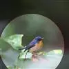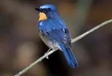 山蓝仙鹟:小型鸟类,体长13-15厘米。雄鸟额基和眼先黑色,颏橙棕色,仅颏尖为蓝黑色,喉、胸、上腹和两胁亦为橙棕色,下体白色范围较小,仅局限于下腹和尾下覆羽。雌鸟上体少黄色,颏、喉、胸概为锈红色,…全部>>