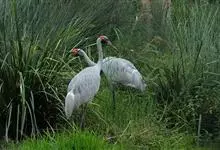 沙丘鹤别名棕鹤、加拿大鹤,是鹤形目鹤科鹤属大型涉禽。成鸟两性相似,雌鹤略小,眼先、前额和头顶裸露部分红色;上体石板灰色,翅覆羽较淡,羽缘锈棕色,羽轴深黑色;尾羽石板灰色,颈部灰蓝色,…全部>>