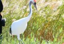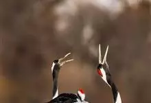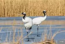 丹顶鹤:是鹤科、鹤属的一种大型涉禽,体长120-160厘米。颈、脚较长,通体大多白色,头顶鲜红色,喉和颈黑色,耳至头枕白色,脚黑色,站立时颈、尾部飞羽和脚黑色,头顶红色,…全部>>