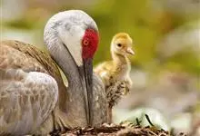 沙丘鹤别名棕鹤、加拿大鹤,是鹤形目鹤科鹤属大型涉禽。成鸟两性相似,雌鹤略小,眼先、前额和头顶裸露部分红色;上体石板灰色,翅覆羽较淡,羽缘锈棕色,羽轴深黑色;尾羽石板灰色,颈部灰蓝色,…全部>>