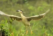 夜鹭是中型涉禽,体长46-60厘米。体较粗胖,颈较短;嘴尖细,微向下曲,黑色;胫裸出部分较少,脚和趾黄色;头顶至背黑绿色而具金属光泽;上体余部灰色;下体白色;枕部披有2-3枚长带状白色饰羽,下垂至背上,…全部>>