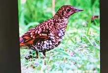 宝兴歌鸫,是鹟科、鸫属的鸟类。宝兴歌鸫为中型鸟类,体长20-24厘米。上体橄榄褐色,眉纹棕白色,耳羽淡皮黄色具黑色端斑,在耳区形成显著的黑色块斑。下体白色,密布圆形黑色斑点。宝兴歌鸫是中国的特有物种,…全部>>
