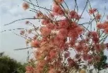 沙拐枣是蓼科,沙拐枣属灌木,高可达150厘米。老枝开展,拐曲;当年生幼枝灰绿色,有关节,叶片线形,花白色或淡红色,簇生叶腋;花梗细弱,花被片卵圆形,瘦果果肋突起或突起不明显,沟槽稍宽成狭窄,…全部>>