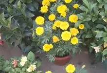 万寿菊是菊科万寿菊属一年生草本植物,别名孔雀菊、缎子花、臭菊花、西番菊、红黄草、小万寿菊、臭芙蓉、孔雀草。万寿菊茎近基部分枝。叶羽状分裂,长5-10厘米,宽4-8厘米,裂片长椭圆形或披针形,具锐齿,…全部>>
