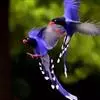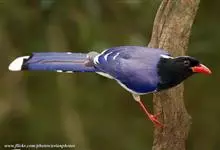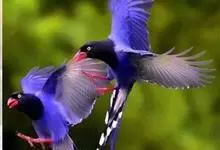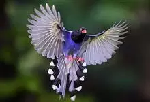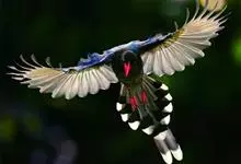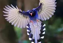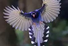 台湾蓝鹊:体长64至65厘米,翼展18至21厘米,尾长约40厘米,尾羽长占了总体长的三分之二。头、脸、颈、喉、胸都是黑色,黄色的眼珠包围黑色的瞳孔,鲜红色的鸟喙、双脚,…全部>>