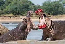 河马,是偶蹄目河马科河马属半水生哺乳动物。河马是淡水中最大的杂食性哺乳动物,体型巨大,四肢短;头粗硕;嘴大,可以张开呈90度角;河马的门齿和犬齿均呈獠牙状,…全部>>